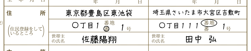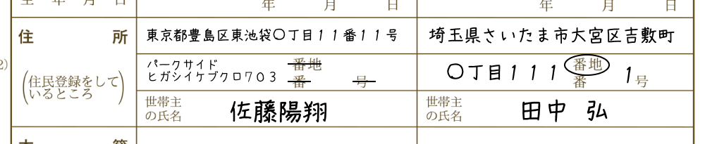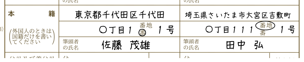 - それぞれの現在の本籍地と筆頭者の氏名を記入します。
