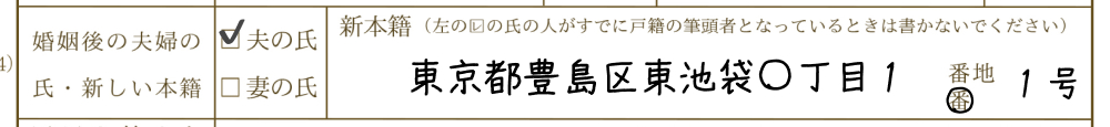 - 選んだ氏の方がすでに戸籍の筆頭者の場合(再婚など)は、新本籍の記入は不要です。