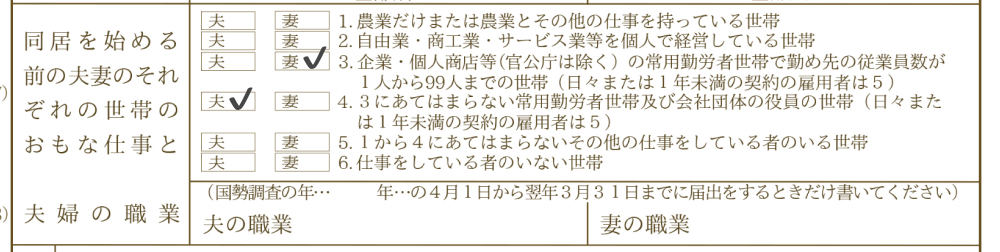 - 「夫妻の職業」欄は、国勢調査が行われる年度(5年に一度行われる)にのみ記入が必要です。
