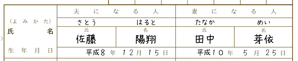- 戸籍に記載されている通りの漢字、ふりがなで書きましょう。